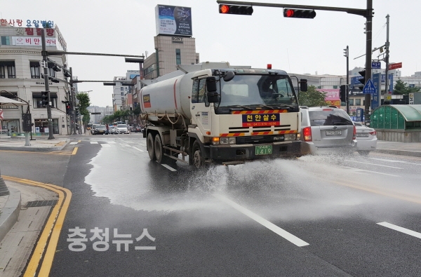 천안시 동남구, 도로 물 뿌리며 폭염 열기 식혀