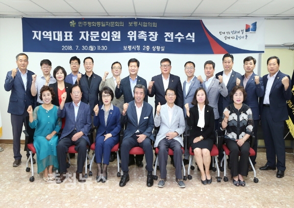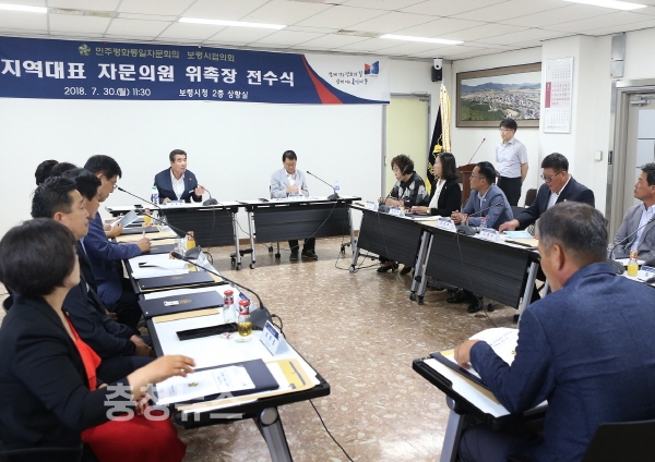 충남 보령시는 30일 오전 시청 상황실에서 김동일 대행기관장(시장)과 김정원 협의회장, 지역대표(지방의원) 자문위원 등 20여 명이 참석한 가운데 민주평통 지역대표 자문위원 위촉장 전수식을 가졌다고 밝혔다.