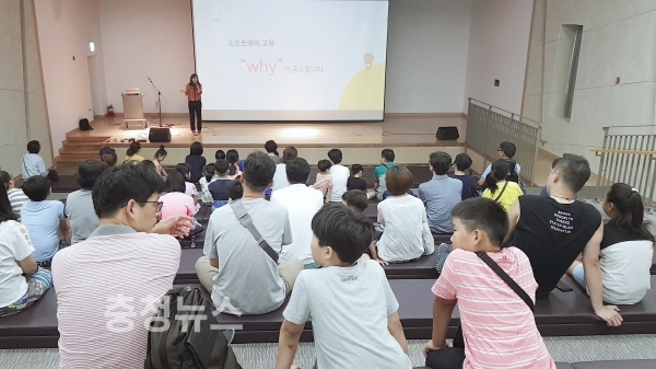 충남 아산시 중앙도서관(관장 권경자)에서 지난 29일 2019년부터 초등학교 5-6학년 실과 수업에서 다뤘던 ICT 활용중심 교육이 코딩기초교육으로 개편됨에 따라 많은 시민들이 관심 갖고 있는 코딩 설명회와 직접 체험할 수 있는 행사를 진행했다.