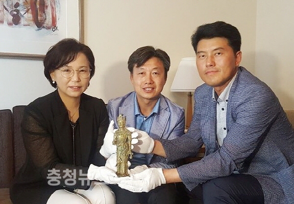 충남도 국외소재문화재 실태조사단(단장 김연 위원장, 단원 이공휘 위원장)과 김기서 의원(부여1)은 지난 23일부터 일본을 찾아 7세기 백제를 대표하는 ‘금동관음보살입상’을 확인, 본격적인 환수 작업에 돌입했다.