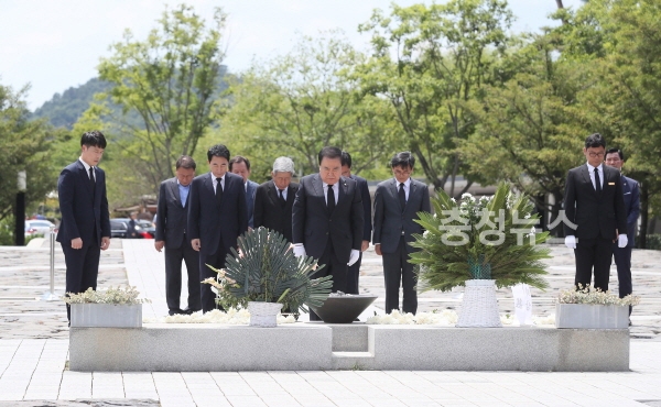 한편 문 의장은 노 전 대통령의 묘비에 새겨진 글귀인 “민주주의 최후의 보루는 깨어있는 시민의 조직된 힘입니다”를 읽은 뒤 “민주주의 최후의 보루는 국회다”라고 강조했다.