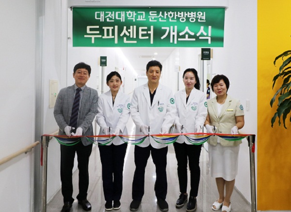 대전대 둔산한방병원(병원장 오민석)이 1일 신관 1층에서 병원장을 비롯한 교직원이 참석한 가운데 두피센터 개소식을 가졌다.