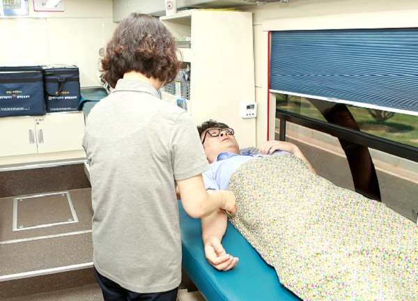 충남대병원(원장 송민호)은 1일 관절염·재활센터 앞 헌혈버스에서 ‘사랑의 헌혈 행사’를 진행했다.