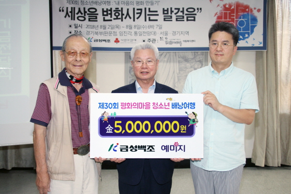 금성백조, 평화의마을 청소년 배낭여행 500만원 후원