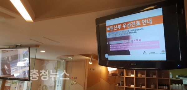 도솔한방병원 접수데스크 임산부 우선(진료)안내 팝 보드 모습