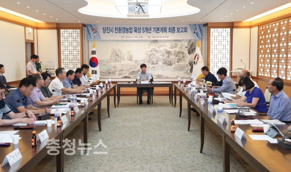 충남 당진시는 지난 2일 당진시청 해나루홀에서 심병섭 당진부시장과 당진시의회 조상연 총무위원장, 김명진 산업건설위원장을 비롯해 관련기관 관계자 등이 참석한 가운데 최종 보고회를 갖고 올해 2월부터 7월까지 추진한 ‘당진시 친환경농업 5개년 계획수립 연구용역’을 마무리했다.