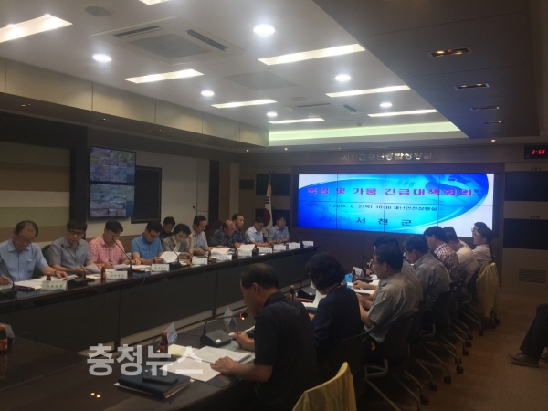 회의를 주재한 박여종 서천부군수는 “현 상황을 재난으로 판단하고 군민과 함께 아무런 탈 없이 이 고비를 잘 이겨낼 수 있도록 실·과·소 및 각 읍면에서는 폭염 대응 추진 현황을 꼼꼼히 확인하는 등 모든 행정력을 집중해달라”고 당부했다.