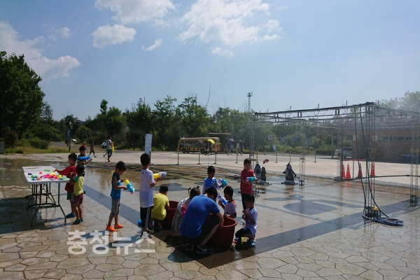 국립생태원은 지난달 21일부터 오는 8월 26일까지 무더위 탈출 체험 이벤트를 운영하고 있으며, 가족 단위로 찾는 관람객들에게 서문광장에서 안개분수, 물총놀이체험 등의 재미를 선사하고 있다.