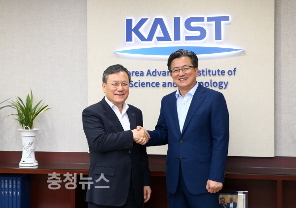 지난 2일 정용래 대전 유성구청장이 카이스트를 방문해 신성철 총장과 간담회를 갖고 기념촬영
