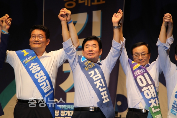 이날 오후 충청도 표심을 잡기 위해 송영길·김진표·이해찬 후보가 대전 평송청소년문화센터 대극장에서 지지를 호소했다.