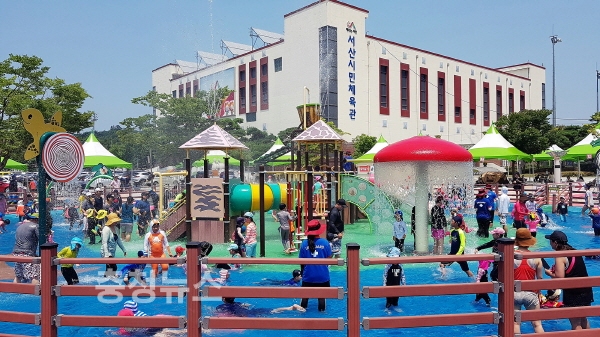 충남 서산시가 여름철 가족단위 휴식 공간 제공을 위해 서산종합운동장에서 운영 중인 무료 야외물놀이장이 인기를 끌고 있다.