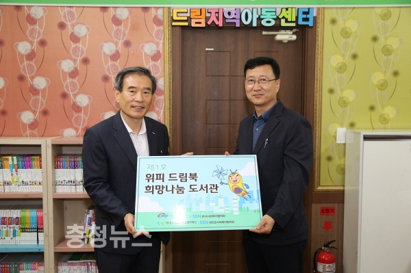 위피 드림북 개관식 : (좌) 김병숙 서부발전 사장 (우) 이기복 드림지역아동센터장
