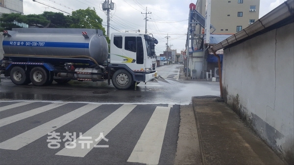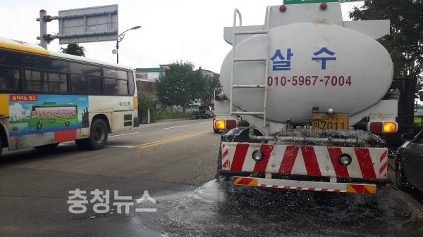 예산군 덕산면 옥계리에 소재한 덕산살수(대표 나기준)는 지난 4일부터 6일까지 살수차 2대를 이용, 폭염이 내려 쬐는 삽교읍과 덕산면 도로에 살수를 지원해 도로의 온도를 낮췄다.