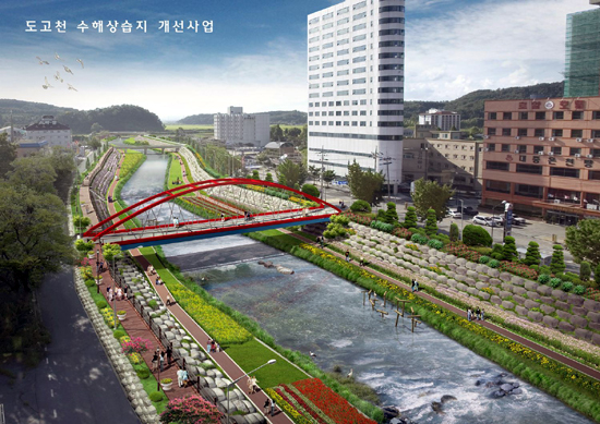 금번 착공하는 『도고천 수해상습지개선사업』은 2011년 9월까지 총 사업비 173억원을 투입하여(國費 104억원, 道費 69억원) 7.7 km의 홍수예방을 위한 하천정비는 물론 주민 친수공간과 경관교량(닐센아치교), 테라스 0.5㎞, 하상산책로 1㎞, 여울 및 소 3개소 등의 시설물이 조성된다.