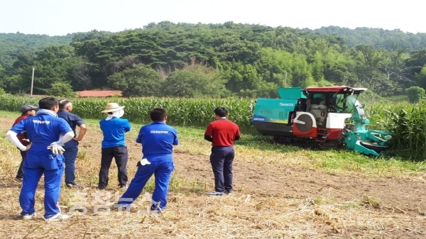 자주식베일러 옥수수 수확 및 논 타작물 수확 시연회 장면