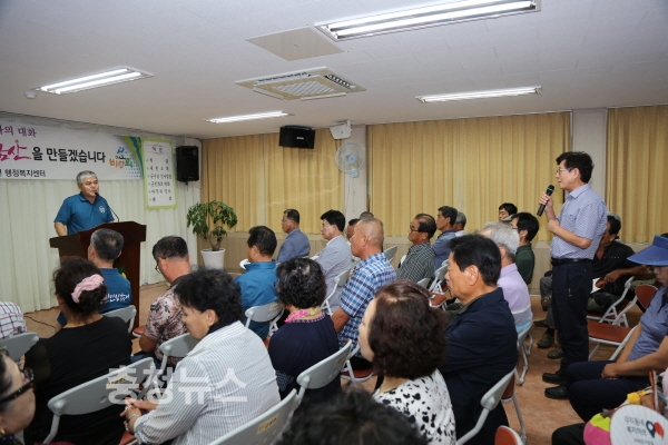 주민과의 토론시간에는 민원성 질의 및 변화와 개선을 요구하는 목소리들이 제기되었고, 문 군수는 차분한 대안제시로 공감의 폭을 넓혔다.