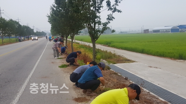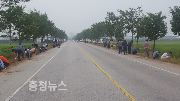 충남 논산시 광석면 이장단(단장 최진상) 및 면사무소 직원 등 60여명은 10일 이른 새벽부터 이사리에서 산동리에 이르는 지방도 643호 일원 가로변 코스모스 꽃길 조성에 구슬땀을 흘렸다.