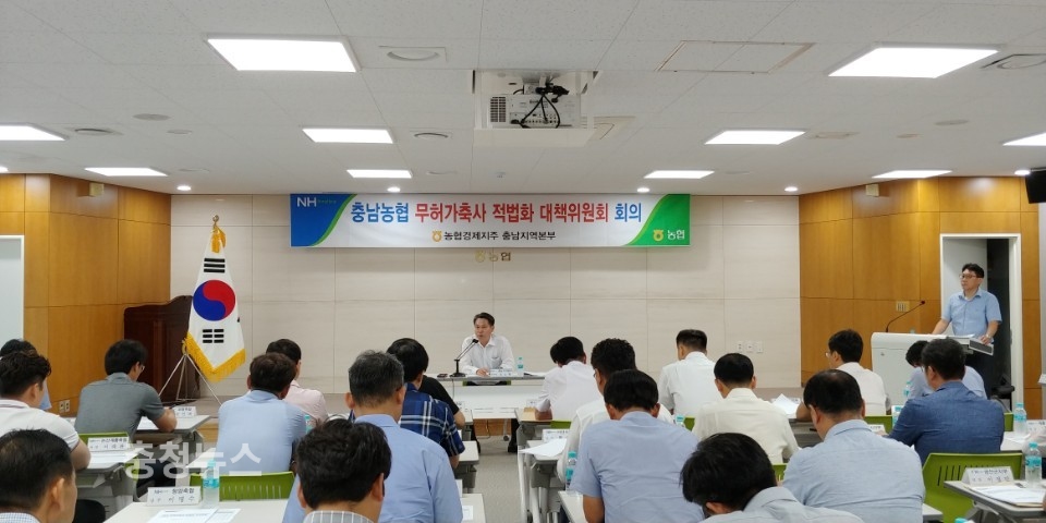 농협 충남지역본부(본부장 조소행)는 농협 시군지부 농정지원단장과 관내 축협 상무 등 약 50여명을 대상으로 조찬 간담회 및 「무허가축사 적법화 추진 대책회의」를 개최했다고 14일 밝혔다.