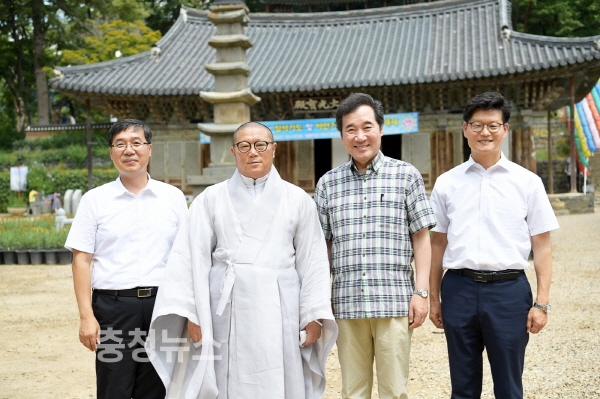 이낙연 국무총리가 14일 여름휴가로 공주 마곡사를 찾았다.