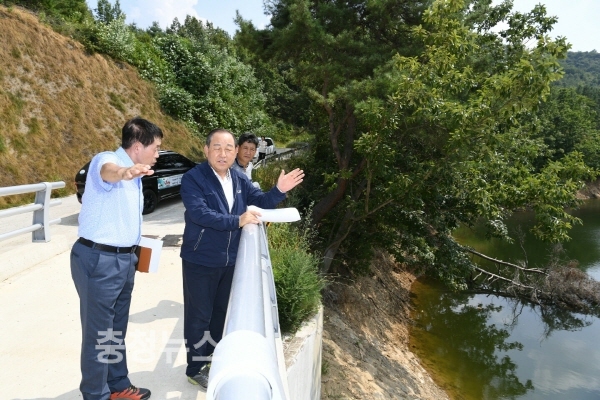 황선봉 군수가 소류지 방문해 저수율 확인 / 충청뉴스 최형순 기자
