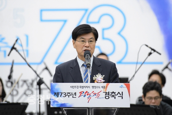 이춘희 세종시장은 15일 세종컨벤션센터에서 열린 제73주년 광복절 경축행사에서 “선열들의 뜻을 되살리고 항일운동의 발자취를 선명하게 만들겠다”고 밝혔다.