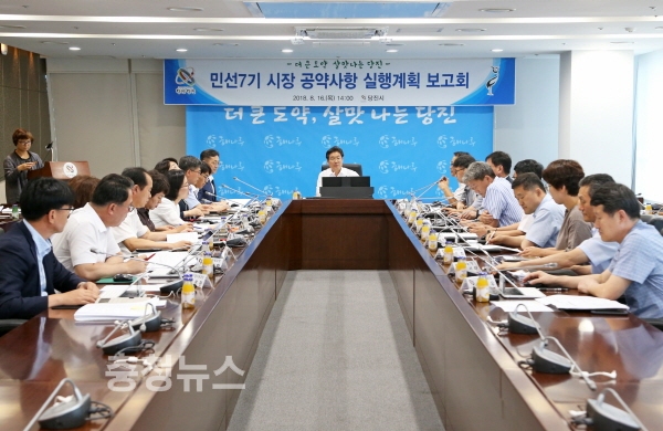 충남 당진시는 민선7기 김홍장 시장의 공약사업을 6대 분야 100개 사업으로 최종 확정하고 공약사업별 실행계획안을 수립했다고 16일 밝혔다.