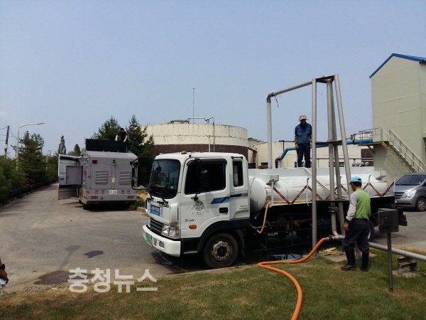 천안시 맑은물사업소, 하수방류수 도로변 살수로 폭염 극복