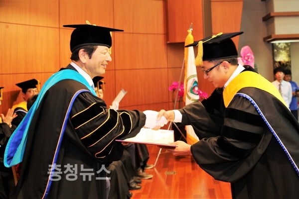 학위수여식은 조인국 대학원교학팀장의 사회로 김종해 교무처장의 학사보고, 황선조 총장의 학위증서와 상장 수여로 진행됐다.