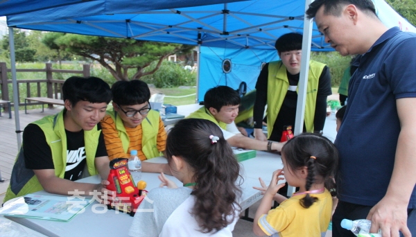 영화제 시작 전 송촌동 마을공동체 ‘다붓다붓’의 유기농 쿠키 나눔과 비래동 꾸러기어린이도서관의 색종이 오리기 체험, 복지관에서는 주민들을 위한 시원한 물과 음료 나눔, 그리고 스티커타투 등 아이들을 위한 간단놀이 체험부스를 운영했다.