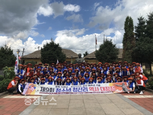 지난 2010년 처음 시작돼 올해로 9회째를 맞은 청산리역사대장정은 홍성군과 충남도가 공동주최하고 사단법인 김좌진장군기념사업회(회장 김을동)가 주관하는 것으로, 올해는 중·고등학생 78명과 임원 및 인솔교사 11명 등 총 89명이 참가해 청산리전투전적지와 여순감옥, 백두산, 하얼빈 등 독립투사들의 발자취를 따라갔다.