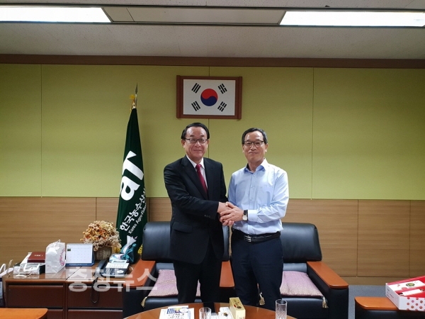 aT를 방문한 알프렛사헬스케어 카츠키 히사시 사장(사진 좌측)과 aT 이병호 사장(사진 우측)