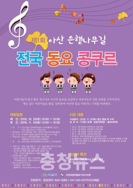 충남 아산시(시장 오세현)에서‘제1회 아산 은행나무길 전국 동요 콩쿠르’가 아산 청소년 교육문화센터(스마트홀)에서 개최된다.