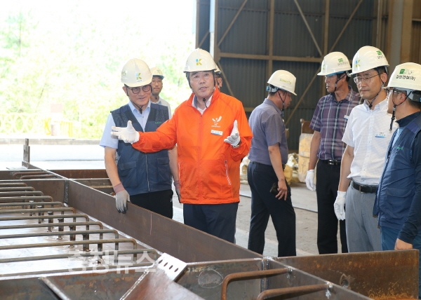 김동일 보령시장 강산건설㈜ 방문 근로자 격려 모습
