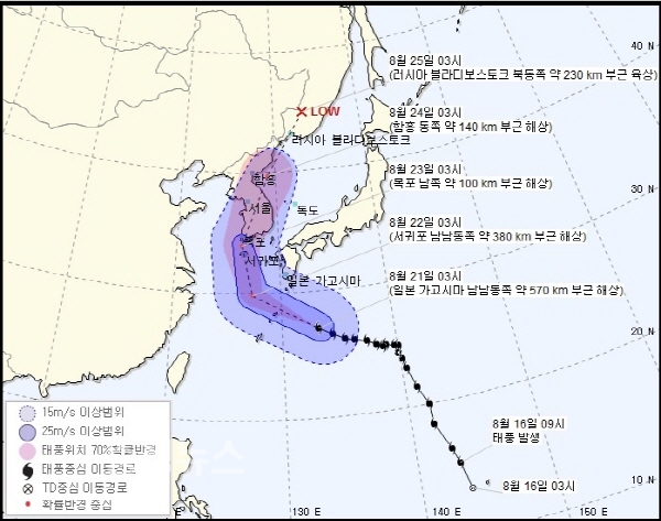 태풍위치 및 예상진로.