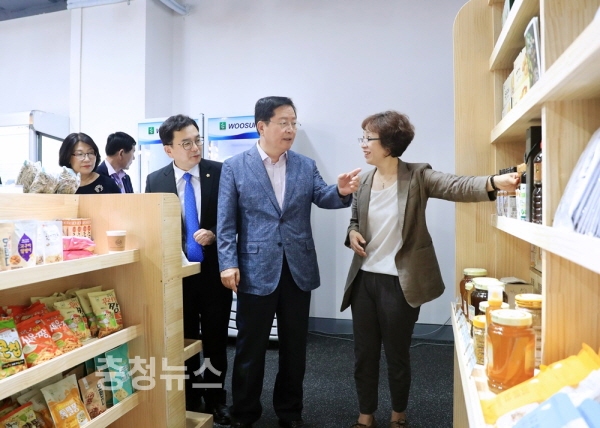 로컬푸드 전문판매장 개장식후 매장을 둘러보고 있는 장종태 구청장
