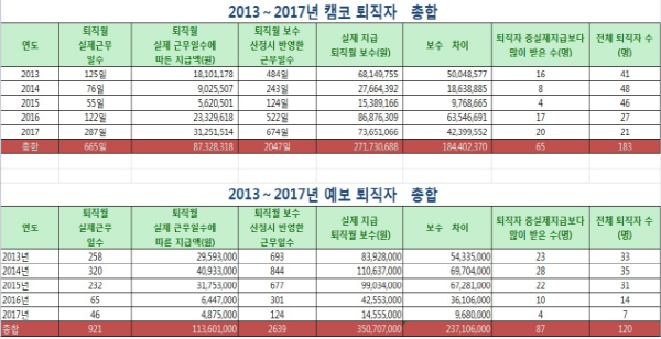 이어 또 다른 사례로, 같은 기관의 김00주임의 경우 근속연수가 6년 1개월이지만 퇴직월 근무일이 4일에 불과해 지급되어야 할 보수는 81만원 수준에 반해, 실제로는 610만원에 달하는 보수 전액이 지급됐다.