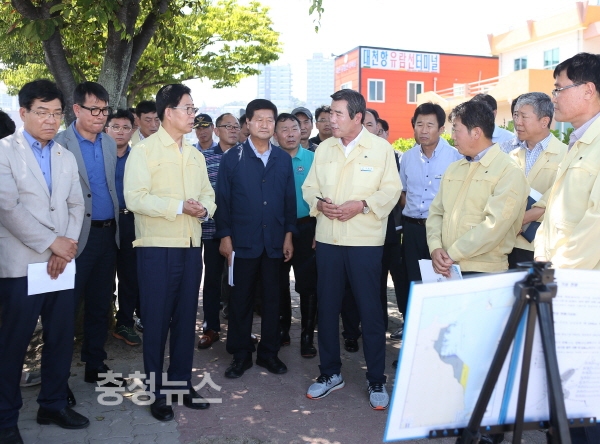 양승조 충남지사-김동일 보령시장, 태풍 솔릭 대비 현장 점검 모습