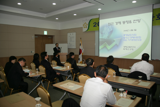 연찬회에서는 경제교육연구소 곽해선 소장을 초빙, 글로벌 경제 동향 및 전망에 대한 강의 와 세계 경제 동조화 시대에 지방 경제를 활성화 시킬 수 있는 방안 모색, PTIA HRD 컨설팅 채종서 교수를 초빙해 리더가 갖추어야할 자질과 혁신적 리더십을 청취했다.