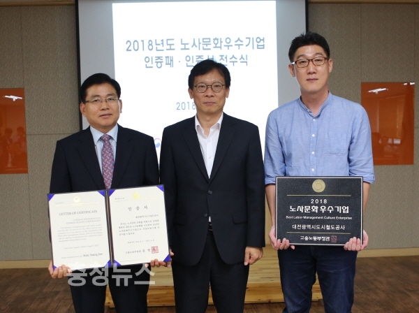 대전도시철도,‘노사문화 우수기업 정부 인증’