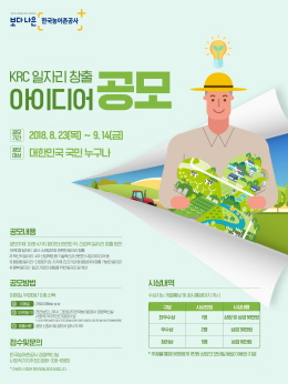 공모는 △공사의 기존사업과 관련된 일자리 창출(KRC형 일자리) △기술혁신, 혁신적 수단을 통한 일자리 창출(혁신적 일자리) △타 기관, 지자체, 민간기관과의 협업을 통한 일자리 창출(협업형 일자리) △일·가정 양립을 위한 일자리 질 개선(행복 일자리) 등 4개 분야로 나누어 진행된다.