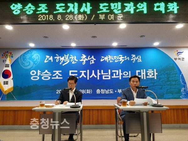 부여군 방문에서 양 지사는 △박정현 군수 등 기관장 환담 △의회 방문 △기자실 방문 △도민과의 대화 △현장 방문 등의 일정을 소화했다.