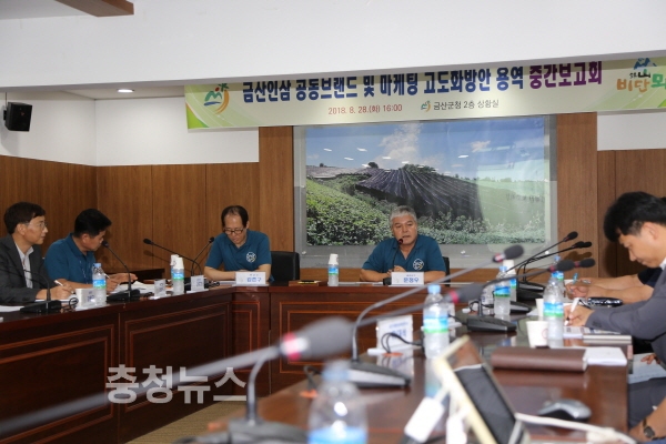 충남 금산인삼 대표 공동브랜드 금홍의 고도화를 위한 용역 중간보고회가 지난 28일 군청 상황실에서 개최됐다.