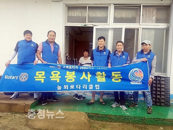 놀뫼로타리클럽 회원들은 매월 넷째주 토요일에 충남 논산시 성동면 원봉리에 거주하고 있는 이병기씨(하반신 마비)에게 따뜻한 마음을 나누고 있다.