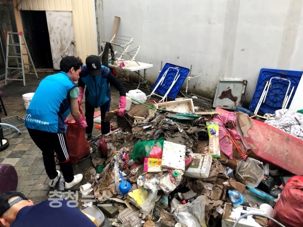 봉사자들은 침수로 인해 자제와 쓰레기가 엉켜 있는 현장을 정리하고, 침수된 가구 및 집기류를 제거하는 등의 활동을 펼쳤다.