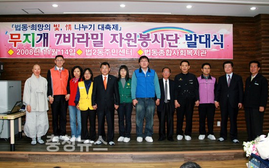 이날 행사는 법1,2동 주민센터, 중리 및 법동복지관, 자생봉사조직의 주관으로 사물놀이 공연을 시작으로 무지개 작품·사진전시회, 일곱 색깔 풍선 날리기 등의 행사가 진행됐다. 이와 함께 무지개 봉사단이 발족됐다.