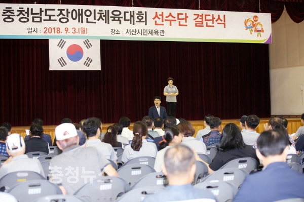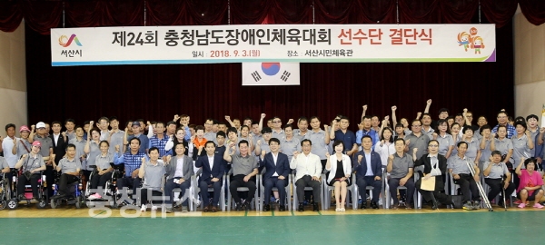 서산시장애인체육회는 지난 3일 서산시민체육관에서 선수단 및 관계자 250여 명이 참석한 가운데 필승을 다지기 위해 결단식을 개최했다.
