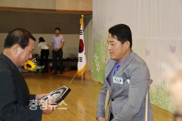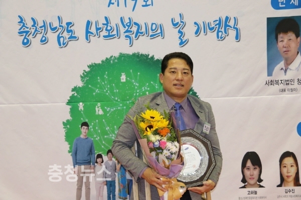 충남사회복지대상 개인부문 대상 박노철씨 수상 모습