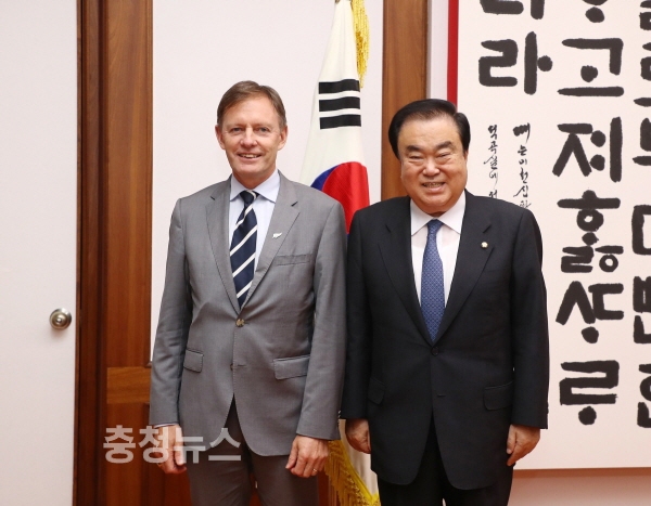 문희상 국회의장은 3일 오후 국회의장 집무실에서 필립 터너(Philp Turner) 주한뉴질랜드대사의 예방을 받고 양국 간 협력관계 증진방안에 대해 의견을 나누었다.