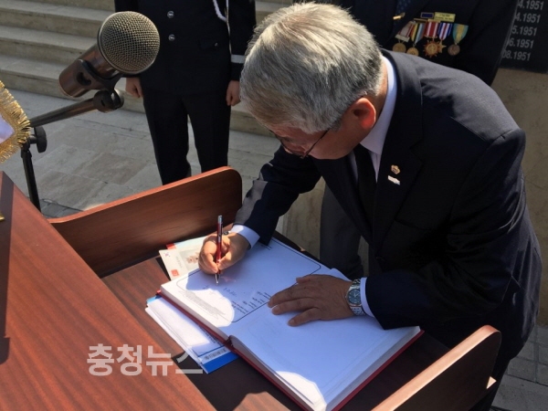 세종특별자치시의회 서금택 의장은 5일 앙카라 한국공원 기념탑에 헌화하고, 5명의 참전용사들을 만나 양국의 우의를 다졌다.