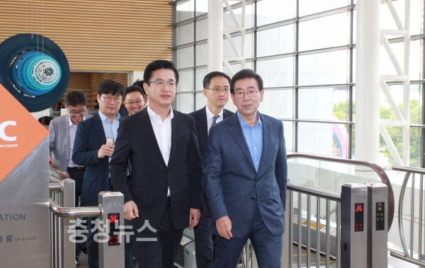 박원순 서울시장과 함께 입장하는 허태정 대전시장